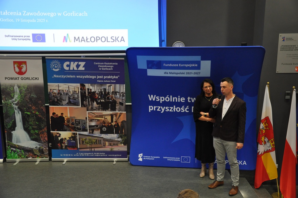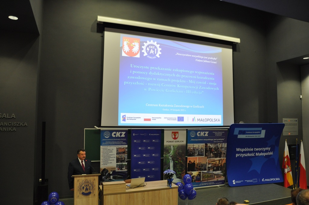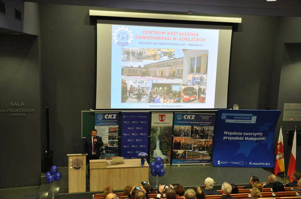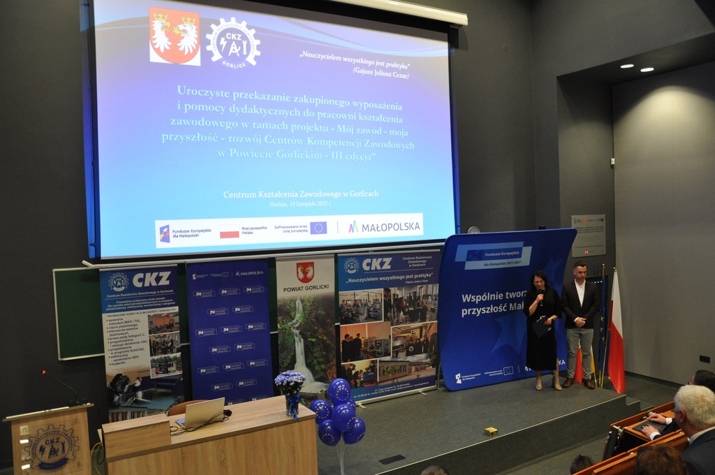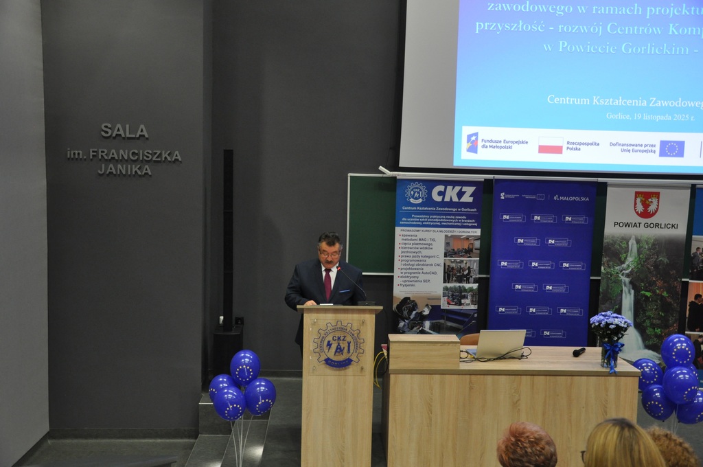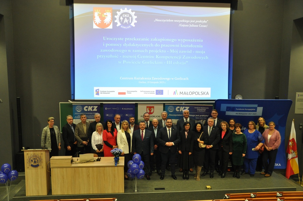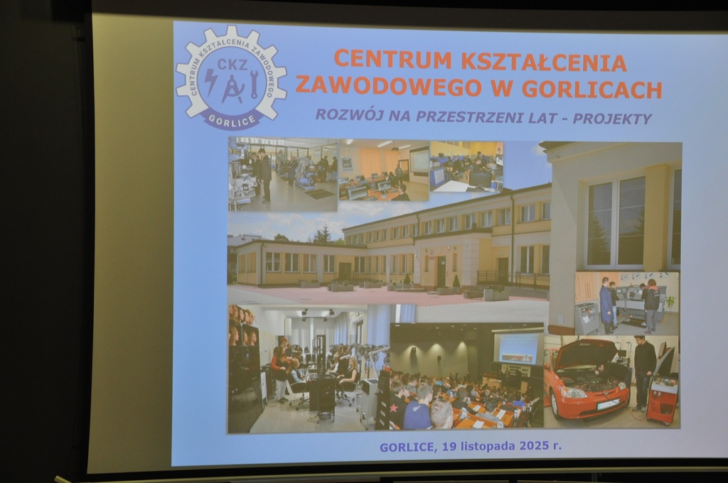 19 listopada 2025 r. w Centrum Kształcenia Zawodowego w Gorlicach odbyło się uroczyste spotkanie promujące projekt: „Mój zawód - moja przyszłość - rozwój Centrów Kompetencji Zawodowych w Powiecie Gorlickim – III edycja”.