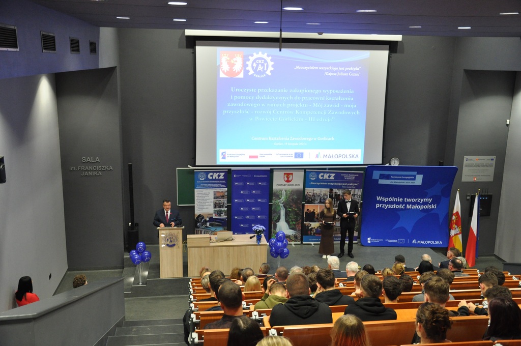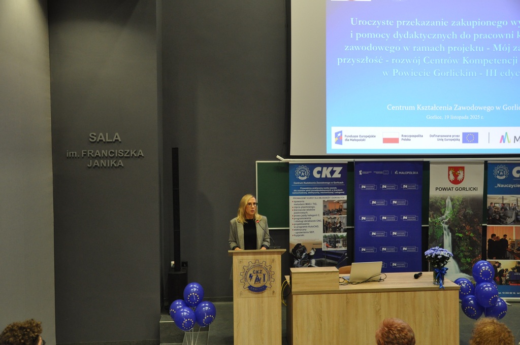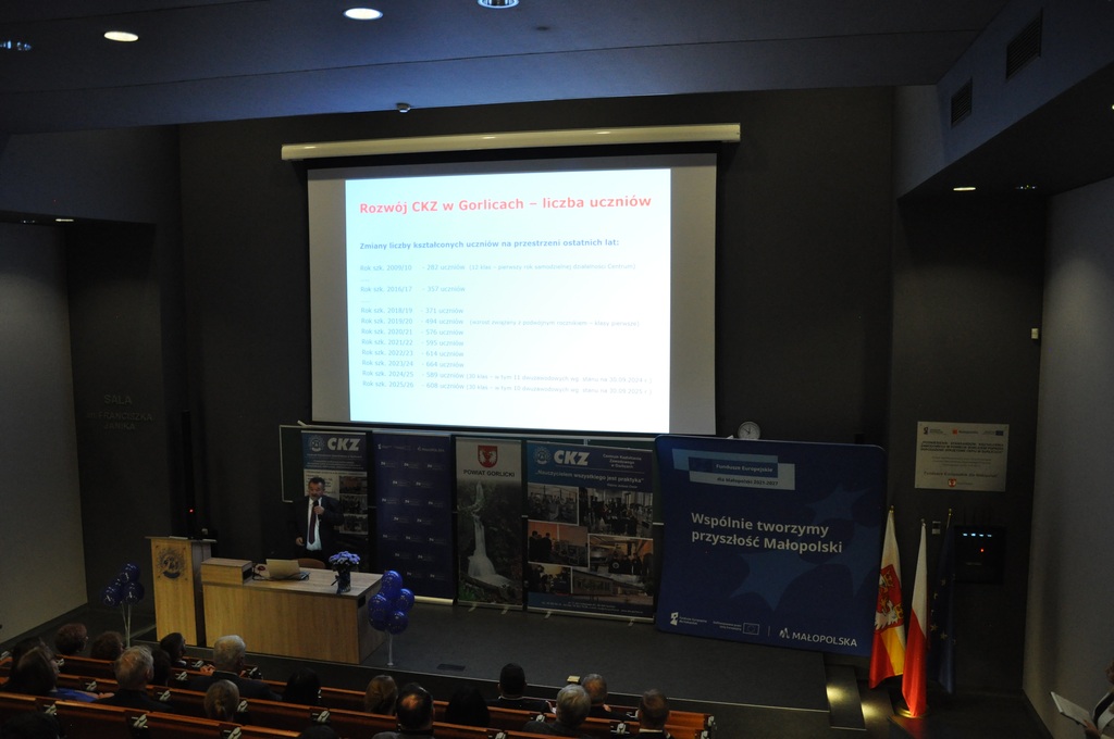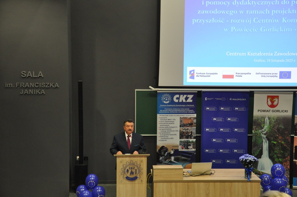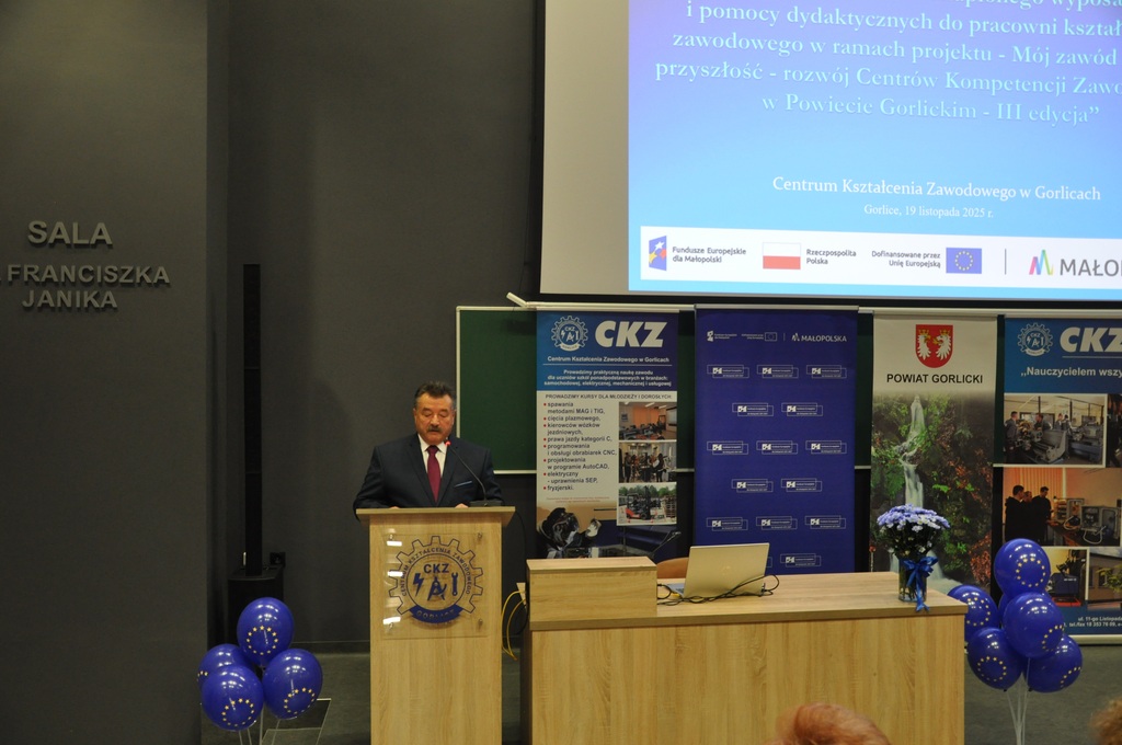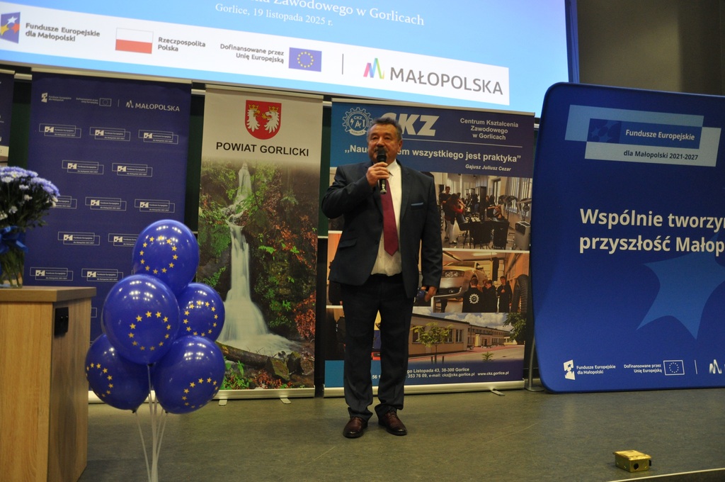 19 listopada 2025 r. w Centrum Kształcenia Zawodowego w Gorlicach odbyło się uroczyste spotkanie promujące projekt: „Mój zawód - moja przyszłość - rozwój Centrów Kompetencji Zawodowych w Powiecie Gorlickim – III edycja”.
