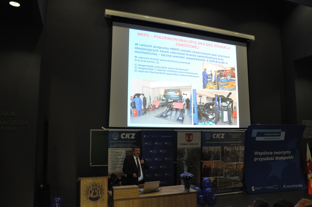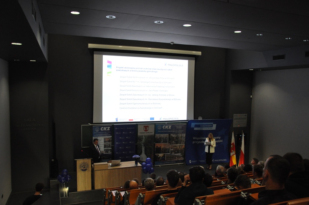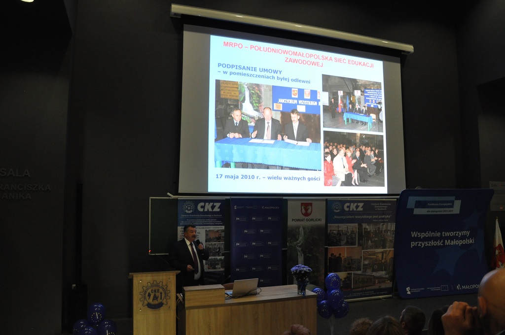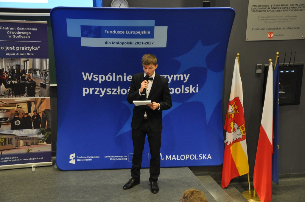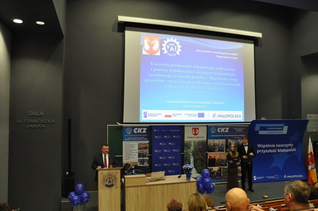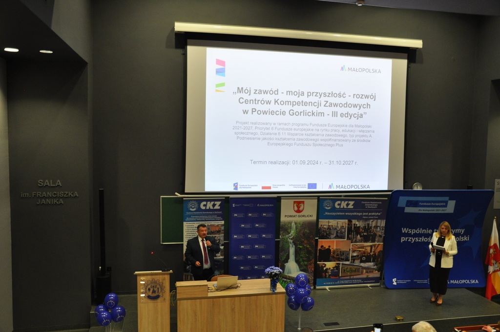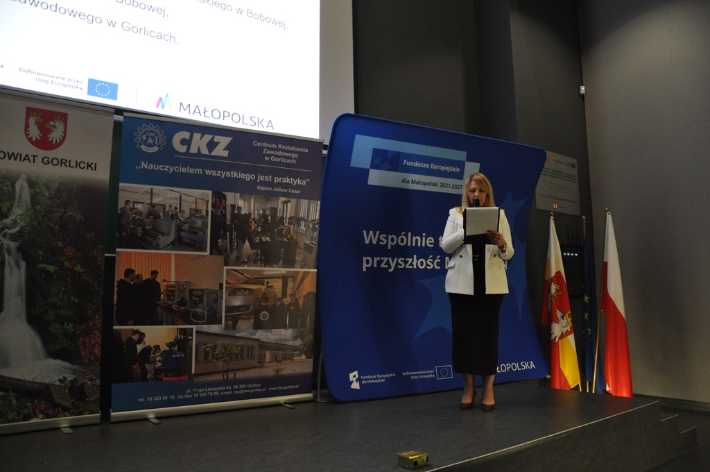19 listopada 2025 r. w Centrum Kształcenia Zawodowego w Gorlicach odbyło się uroczyste spotkanie promujące projekt: „Mój zawód - moja przyszłość - rozwój Centrów Kompetencji Zawodowych w Powiecie Gorlickim – III edycja”.